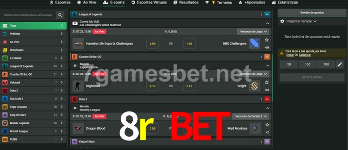 O 8r bet oferece uma grande seleção de opções de apostas em e-sports com probabilidades competitivas